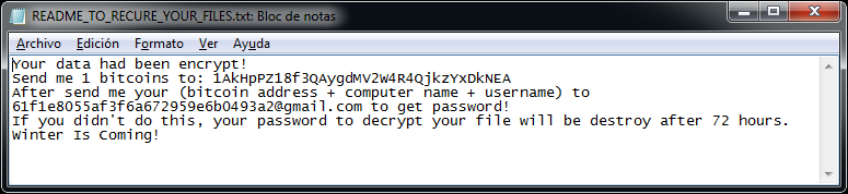 » Crea el archivo README_TO_RECURE_YOUR_FILES.txt encargado de informar al usuario de las modificaciones sufridas.