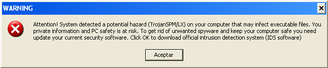 2. Después de un periodo de tiempo el virus cierra todos los programas e impide abrirlos de nuevo mostrando el siguiente mensaje: