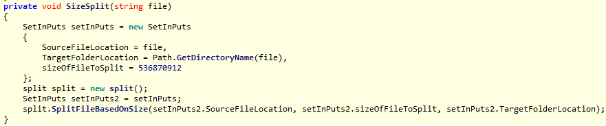 Cabe mencionar que si el tamaño del archivo es mayor al determinado por defecto se ejecutaran las funciones SizeSplit y SplitFileBasedOnSize encargadas de dividir el archivo en partes iguales bajo la extensión .RSplited