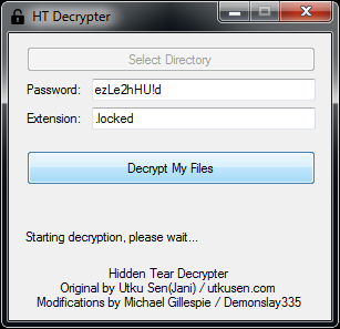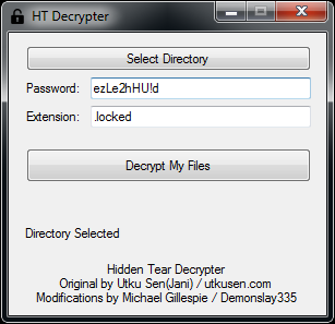 Gracias a la labor desempeñada por Utku Sen y Michael Gillespie es posible recuperar toda la información modificada (cifrada) por este Ransomware, a través de las herramientas y se pueden realizar tanto la búsqueda de la contraseña de cifrado (de estar almacenada en la maquina en archivos propios de configuración), como un proceso de fuerza bruta donde sea posible identificarla (por medio un archivo de prueba).