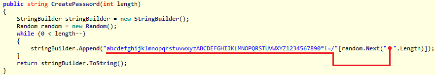 El troyano comienza su ejecución creando un password aleatorio de 10 dígitos con el cual cifrara (a través de la función FileEncryption) toda la información que encuentre en la carpeta de documentos del usuario, a diferencia de otros troyanos de esta clase no selecciona un tipo de archivo en particular por lo que afecta a todos los archivos que se encuentren en dicho directorio.