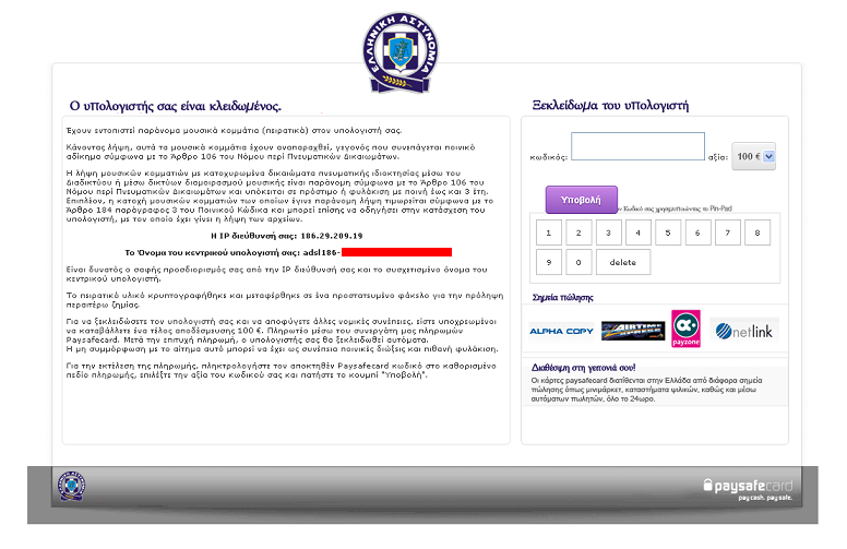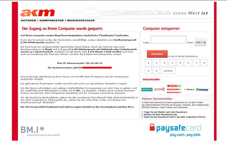 Este es otro tipo de Ransomware, que usa los logos de diferentes organizaciones de derechos de autor en el mundo para cobrar una suma de $300 al usuario infectado.