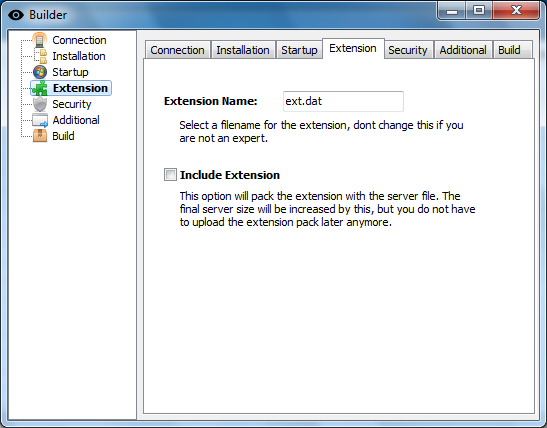 El archivo cliente tiene la opción de Builder, la cual permite crear el archivo server.exe con ciertas opciones de configuración: