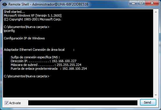 Permite ejecutar una Shell Remota para enviar comandos específicos.