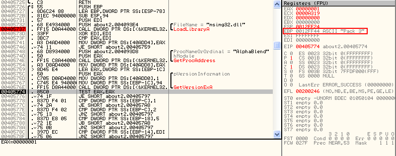 Después de ejecutarse, el malware modifica algunas funciones del API de Windows las cuales son usadas por sistemas de detección, por lo cual se impide su adecuado funcionamiento: