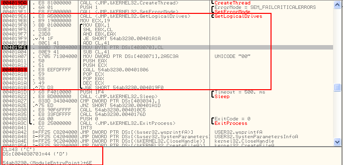 Ya habiendo creado la llave para cifrar los archivos procede a crear un Thread para buscar todos los archivos en todas las unidades de disco posibles en el equipo a través de un ciclo. En el caso del equipo de prueba solo existe una unidad C: