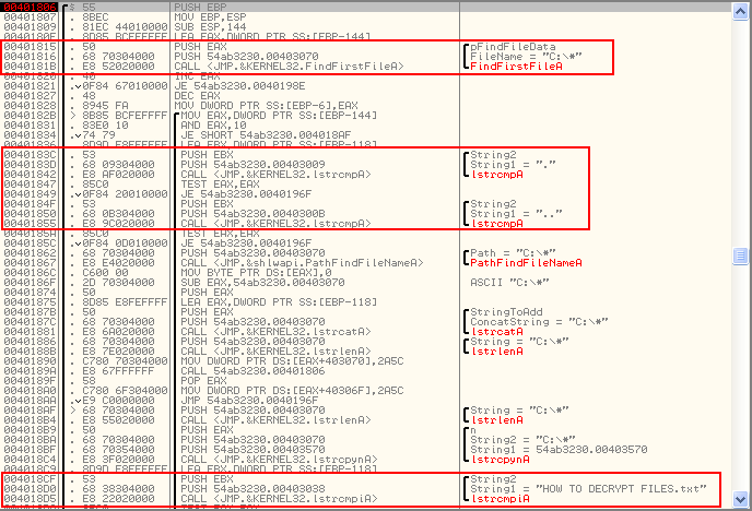 Una vez obtenida una unidad valida procede a buscar todos los archivos en todas las carpetas comparando al final que no sea el archivo HOW TO DECRYPT FILES.txt de modo que este pueda ser visualizado por el usuario victima.