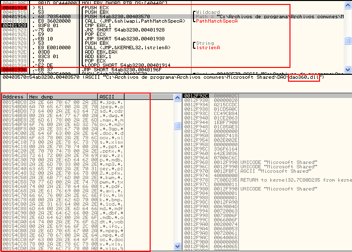 Al desempaquetar el archivo y revisar su funcionamiento con OllyDbg se encontraron algunas funciones interesantes