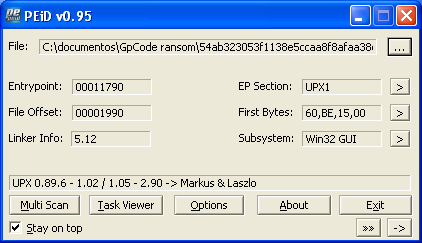 Al revisar en detalle el troyano encontré que este está empaquetado con UPX