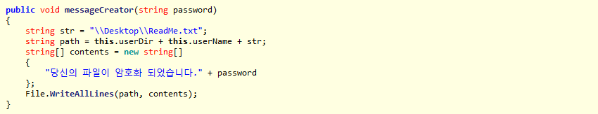 Una vez modificados los datos del usuario procede con la creación del archivo ReadMe.txt; en el cual es insertado un mensaje de información y el PASSWORD de cifrado utilizado :-D