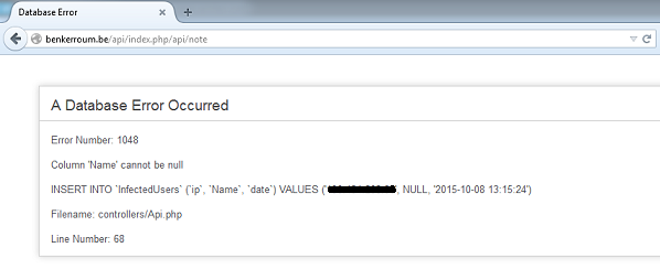 InfectedUsers: Almacena los datos de las maquinas infectadas. Campos (ip, Name, date).