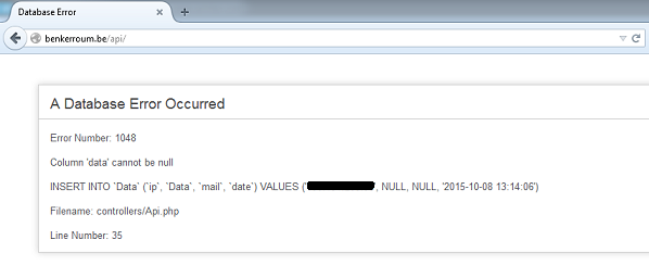 Data: Almacena los datos enviados por el cliente al momento de realizar el pago. Campos: (ip, Data, mail, date), si la respuesta del servidor es afirmativa (ok) emite el mensaje: