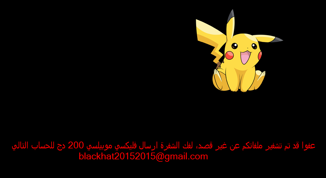 (: لقد تم تشفير ملفاتكم، لفك الشفرة فلكسي موبيليس للعنوان التالي me.blackhat20152015@mt2015.com وشكرا على كرمكم مسبقا