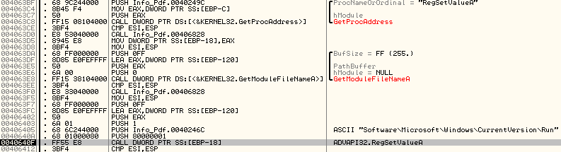 Posteriormente se crea una llave de registro para inicializar el proceso en cada reinicio del sistema (como es habitual).