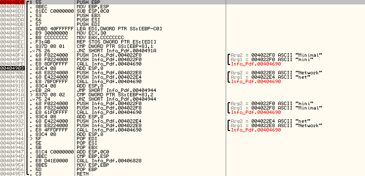 El troyano comienza su ejecución extrayendo las extensiones de los archivos que va a cifrar, la función en la posición 00405580 es la encargada de traer dicha información y ubicarla en memoria para ser usada por la función de cifrado posterior, la siguiente imagen muestra los valores hexadecimales correspondientes a las siguientes extensiones: *.jpeg, *.jpg, *.pdf, *.pptx, *.ppt, *.xlsx, *.xls, *.rtf, *.docx, *.doc, *test.txt |