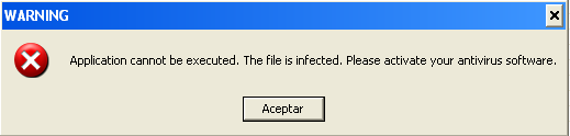 2. Después de un periodo de tiempo el virus cierra todos los programas e impide abrirlos de nuevo mostrando el siguiente mensaje: