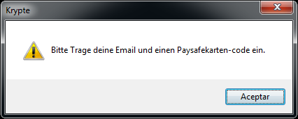 Wenn der Paysafekarten-code richtig sein sollte, Bekommst du an deine Email einen Key + Entfern und Entschlüsselungsprogramm. An deiner stelle würde ich kein Antivierenprogramm laufen lassen und nicht versuchen, diesen Virus zu entfernen. Dieses Programm ist deine einzige möglichkeit, deine Daten zurückzubekommen. Dein Private-Key wird nach 72h von unserem Server gelöscht. Viel Erfolg :)