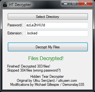 Gracias a la labor desempeñada por Utku Sen y Michael Gillespie es posible recuperar toda la información modificada (cifrada) por este Ransomware, a través de las herramientas y se pueden realizar tanto la búsqueda de la contraseña de cifrado (de estar almacenada en la maquina en archivos propios de configuración), como un proceso de fuerza bruta donde sea posible identificarla (por medio un archivo de prueba).