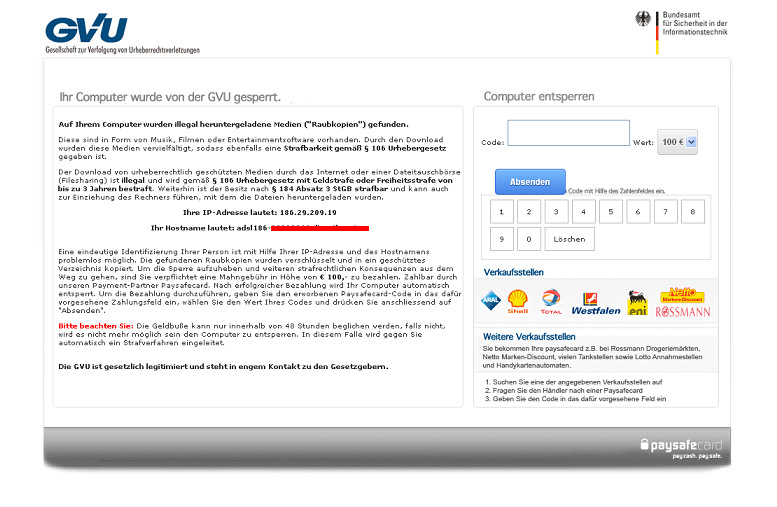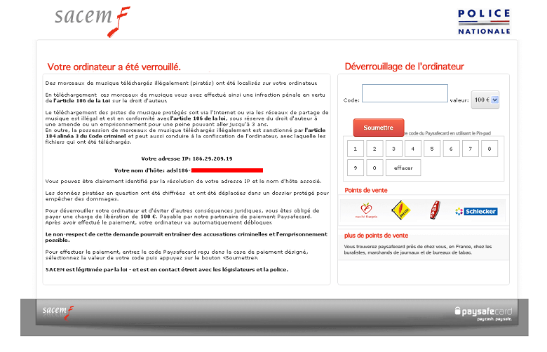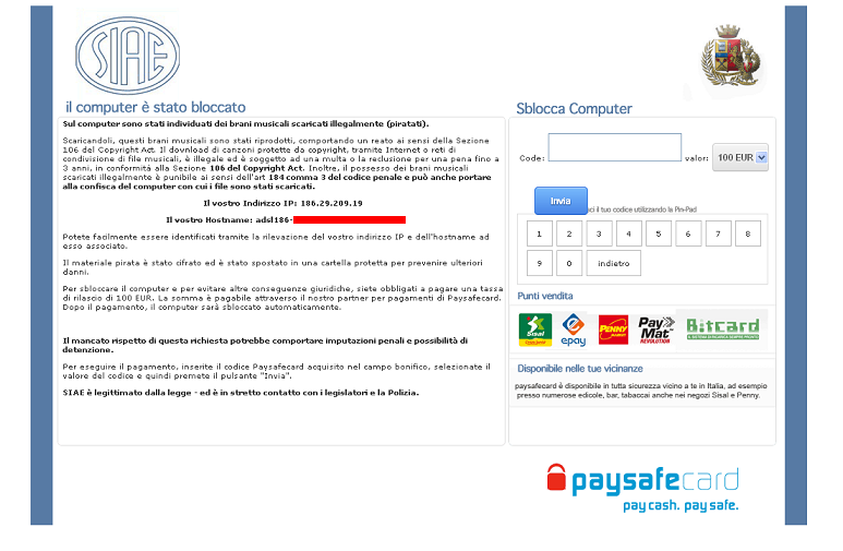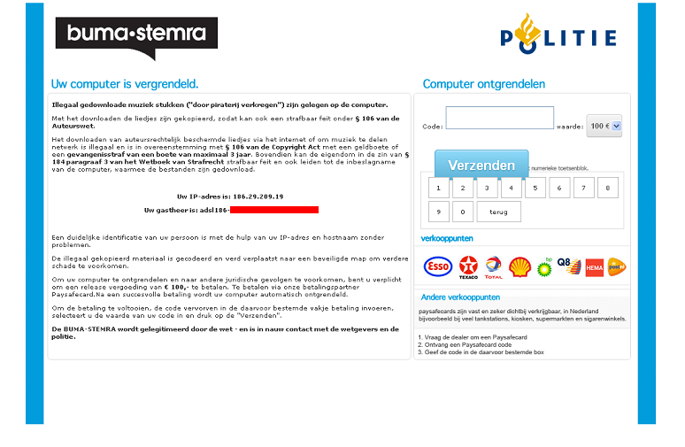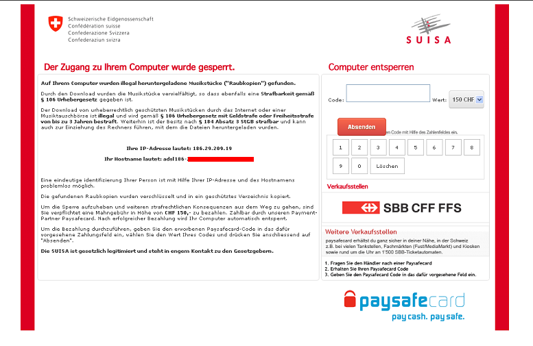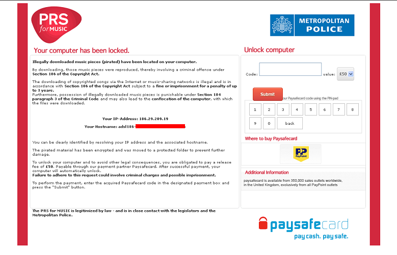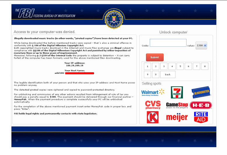 Este es otro tipo de Ransomware, que usa los logos de diferentes organizaciones de derechos de autor en el mundo para cobrar una suma de $300 al usuario infectado.