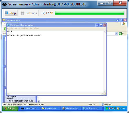 Después de enviar el archivo server.exe a l usuario víctima se obtiene la conexión. La siguiente es una grafica de la aplicación Cliente.