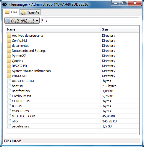 Al establecer la conexión es posible realizar operaciones de consulta y transferencia de archivos.