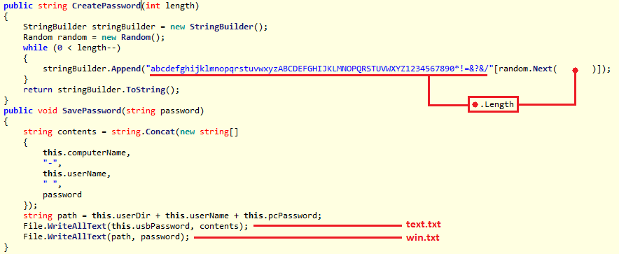 El troyano comienza su ejecución (de manera oculta, es decir que no es posible visualizar el proceso en el administrador de tareas de Windows) realizando una copia de sí mismo en la carpeta del usuario infectado con el nombre able.exe y generando el password que será utilizado para cifrar el contenido de los archivos, la longitud de dicha clave es de 15 caracteres alfanuméricos la cual a su vez es almacenada en los archivos text.txt (computerName + userName + password) y win.txt (password) respectivamente.