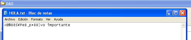 Cuando encuentra un archivo valido dentro de la lista de opciones procede a leer su contenido, en este caso el archivo de prueba se llama HOLA.txt con el contenido “este es mi archivo importante”