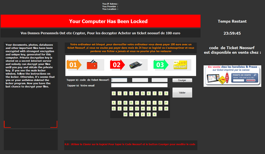 La función de este troyano es hacer creer a las víctimas que sus archivos han sido cifrados obligándolos/incitándolos a pagar una cifra de € 100, cuando en realidad toda la información disponible en archivos y carpetas ha sido ocultada a través de métodos disponibles por el sistema operativo Windows.