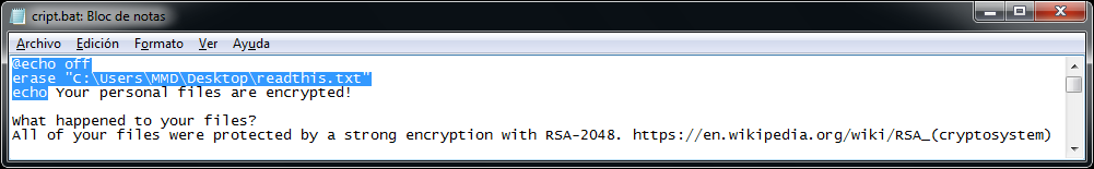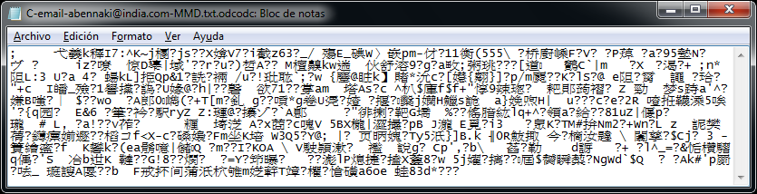 El archivo de texto MMD.txt será utilizado como prueba para visualizar más fácilmente todas las modificaciones sufridas en cada uno de los caracteres de mismo: