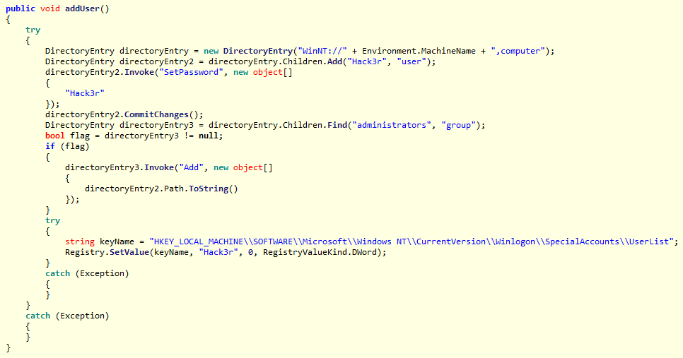 » CreateShare: Aunque esta función no es llamada por el método principal, tiene como objetivo habilitar y compartir la carpeta o directorio especificado, esto con el objetivo de que otras personas puedan descargar el troyano a través de una red LAN.