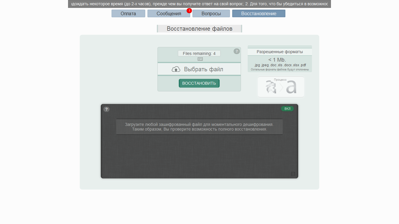 » Opción para cargar un máximo de 4 archivos que serán descifrados como evidencia de que el software funciona adecuadamente.
