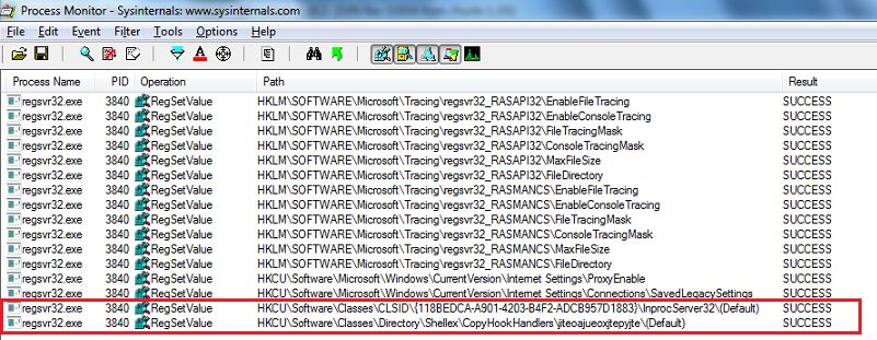 Así mismo se crean y modifican llaves en el registro de Windows con el fin de cambiar algunas opciones de configuración, monitorear todo el tráfico que viaja por la red y permitir el inicio de la librería en cada reinicio del equipo.