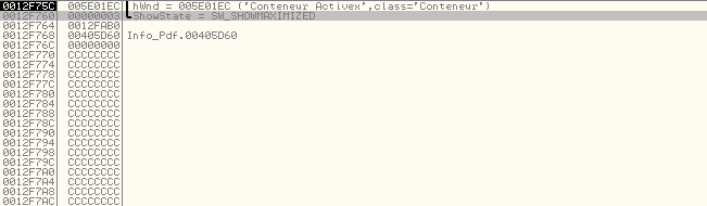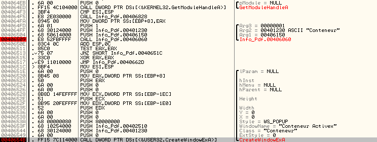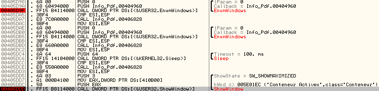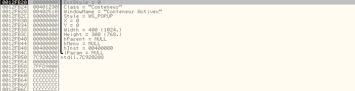 Obtiene control de la pantalla y crea una ventana bajo el nombre “Conteneur Activex” la cual tendrá la imagen que el usuario visualiza en la infección.