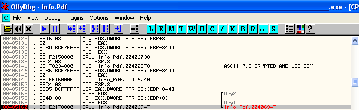 Finalmente pasa a la función encargada de cambiar el nombre del archivo original (0040512E) a uno con la extensión .ENCRYPTED_AND_LOCKED