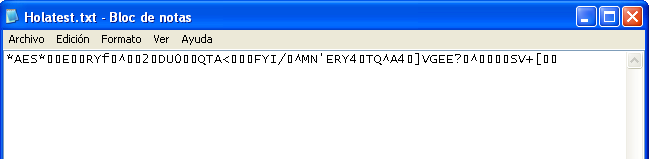 Posteriormente inserta la información cifrada, primero los caracteres *AES* (para confundir a los usuarios) seguido de cada uno de los caracteres cifrados, así sucesivamente hasta que sea el final del archivo (004050A5)